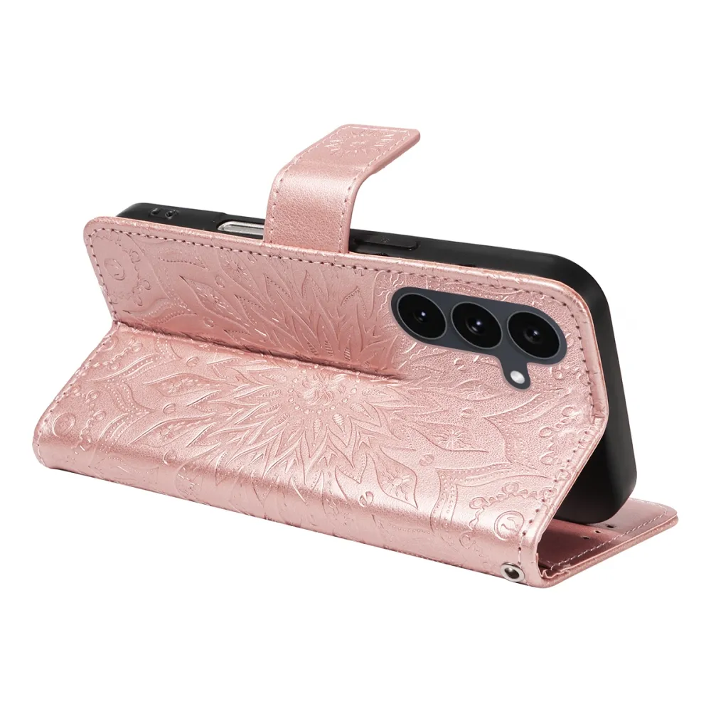 Rózsaarany napraforgó pénztárca tok Samsung Galaxy S25 FE számára