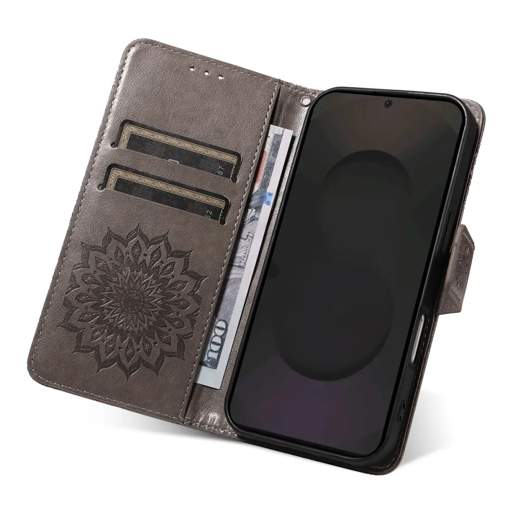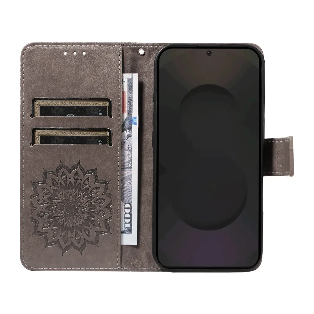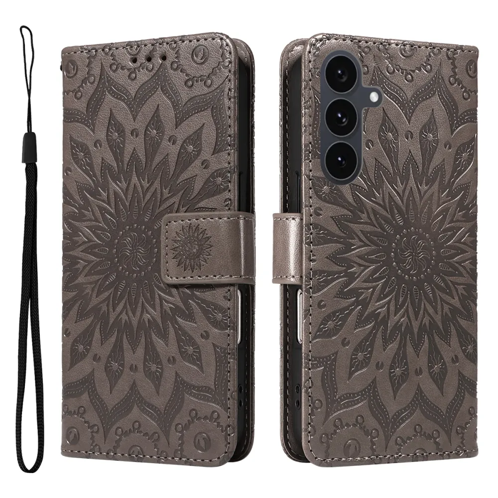 Szürke pénztárca tok Napraforgó Samsung Galaxy S25 FE számára