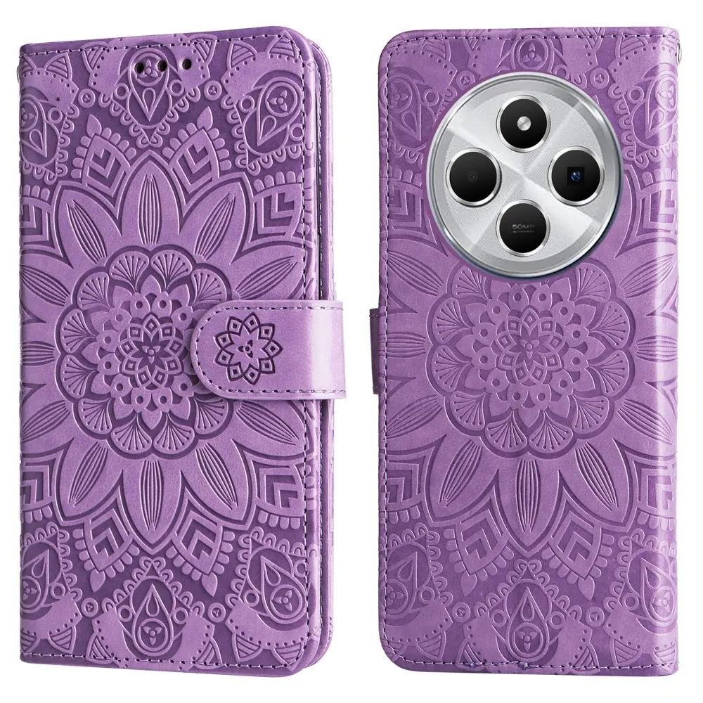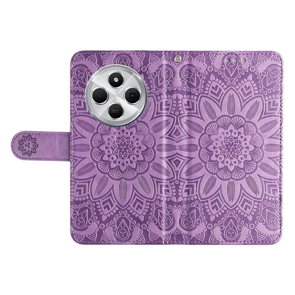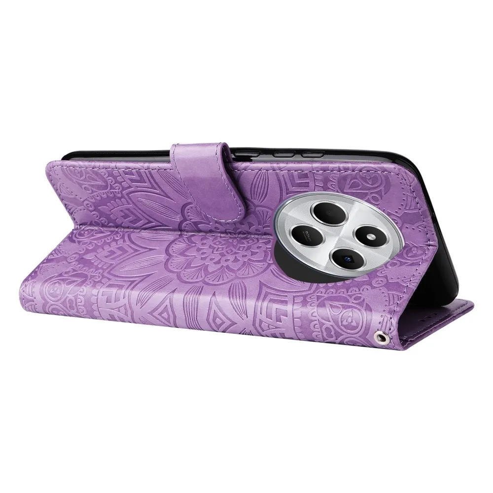Napraforgó könyv tok Xiaomi Redmi 14C/Poco C75-hez - lila