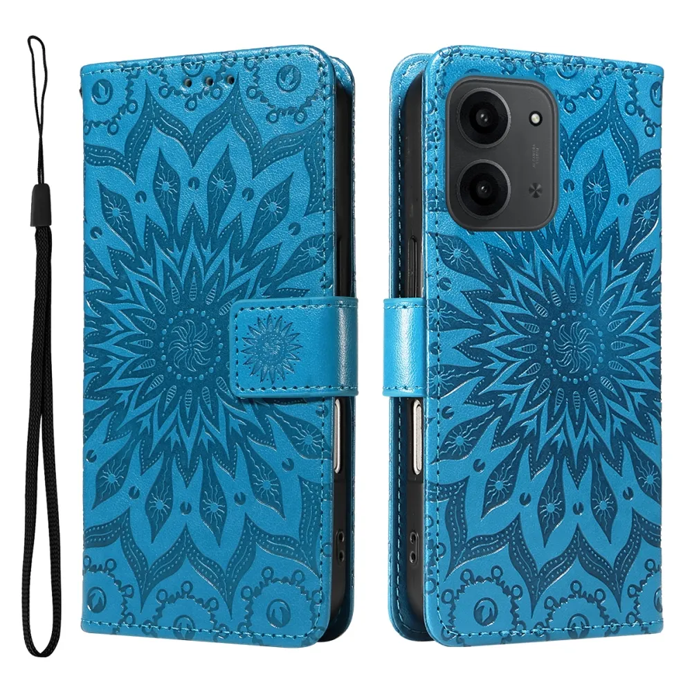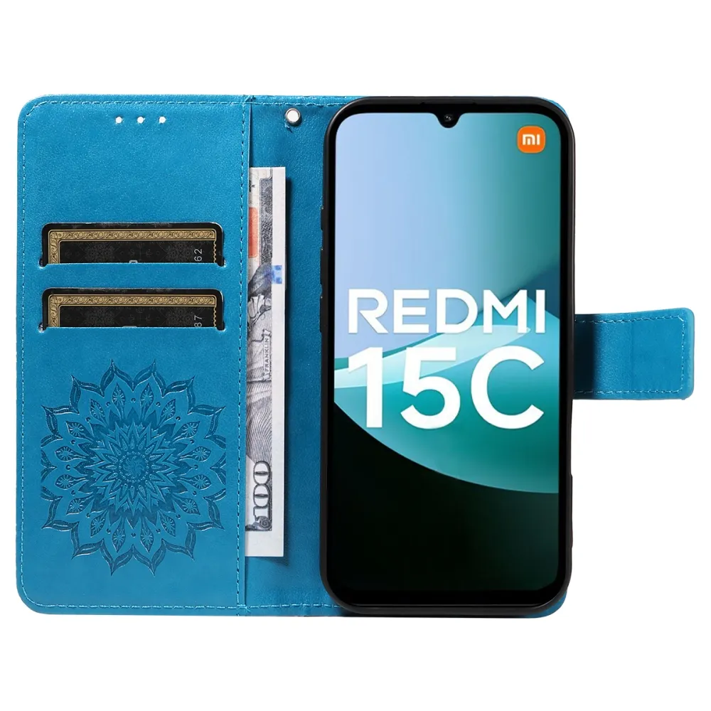 Napraforgó könyv tok Xiaomi Redmi 15C 4G/5G (173mm) - kék