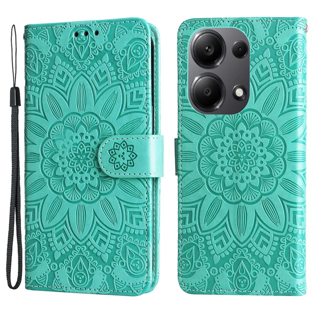 Napraforgó könyv tok Xiaomi Redmi Note 14S/Note 13 Pro 4G/Poco M6 Pro - teal színű