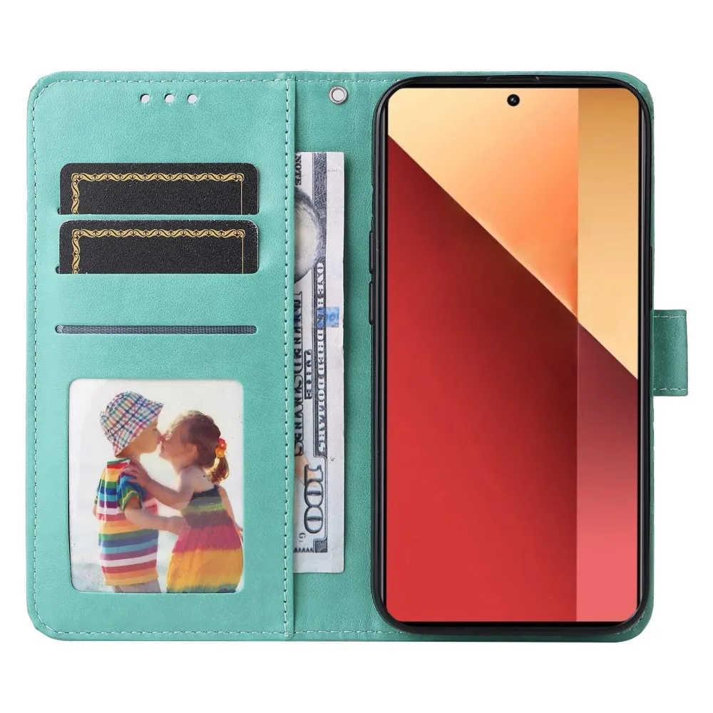 Kék-zöld napraforgó pénztárca tok a Xiaomi Redmi Note 14S/Note 13 Pro 4G/Poco M6 Pro számára