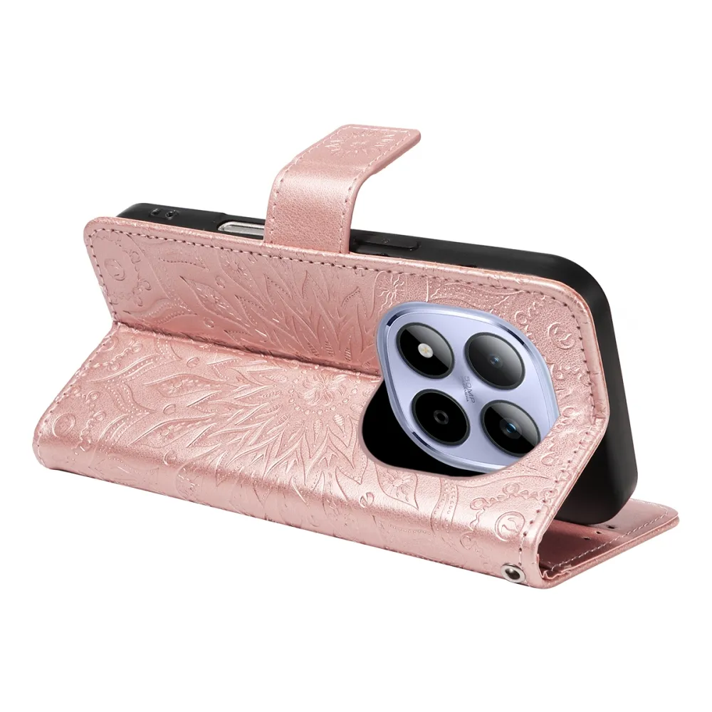 Napraforgó könyv tok Xiaomi Redmi Note 15 Pro 5G - rózsaarany színben
