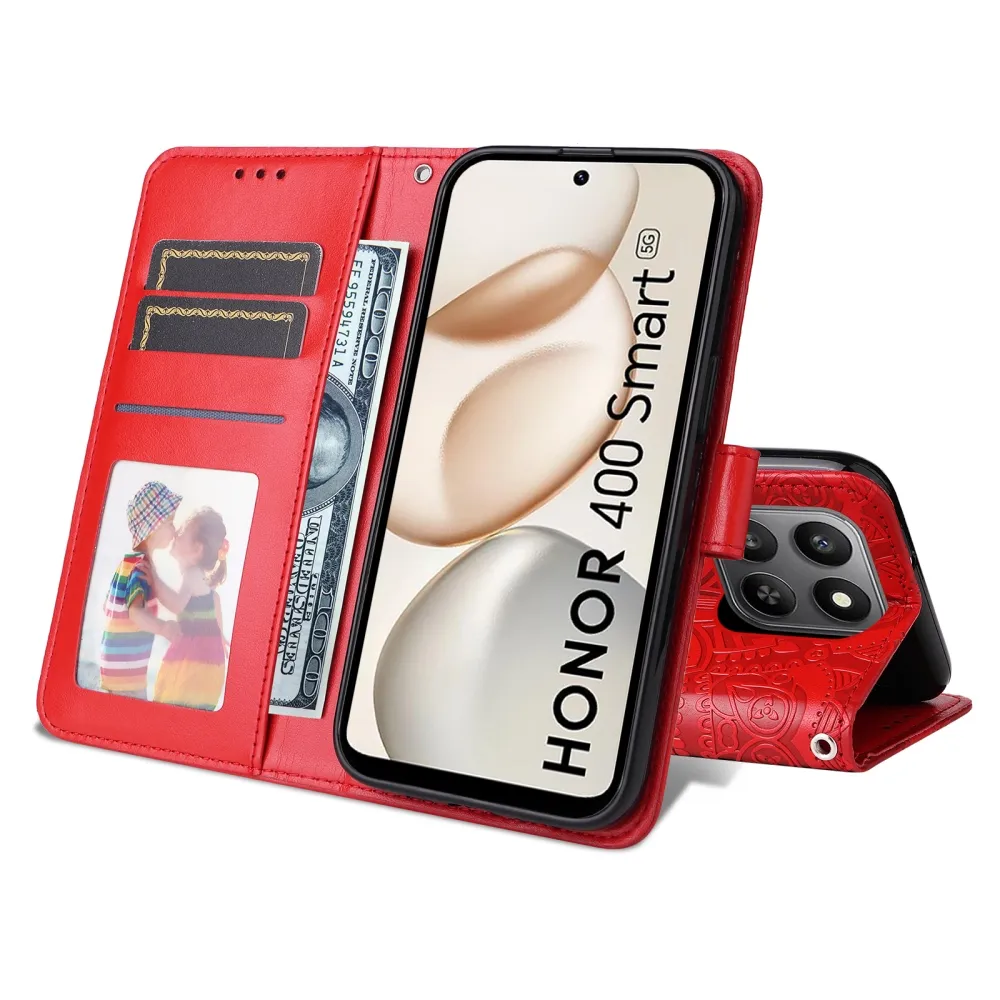 Napraforgó könyvtáska a Honor 400 Smart 5G/4G/Honor X7d készülékhez - piros