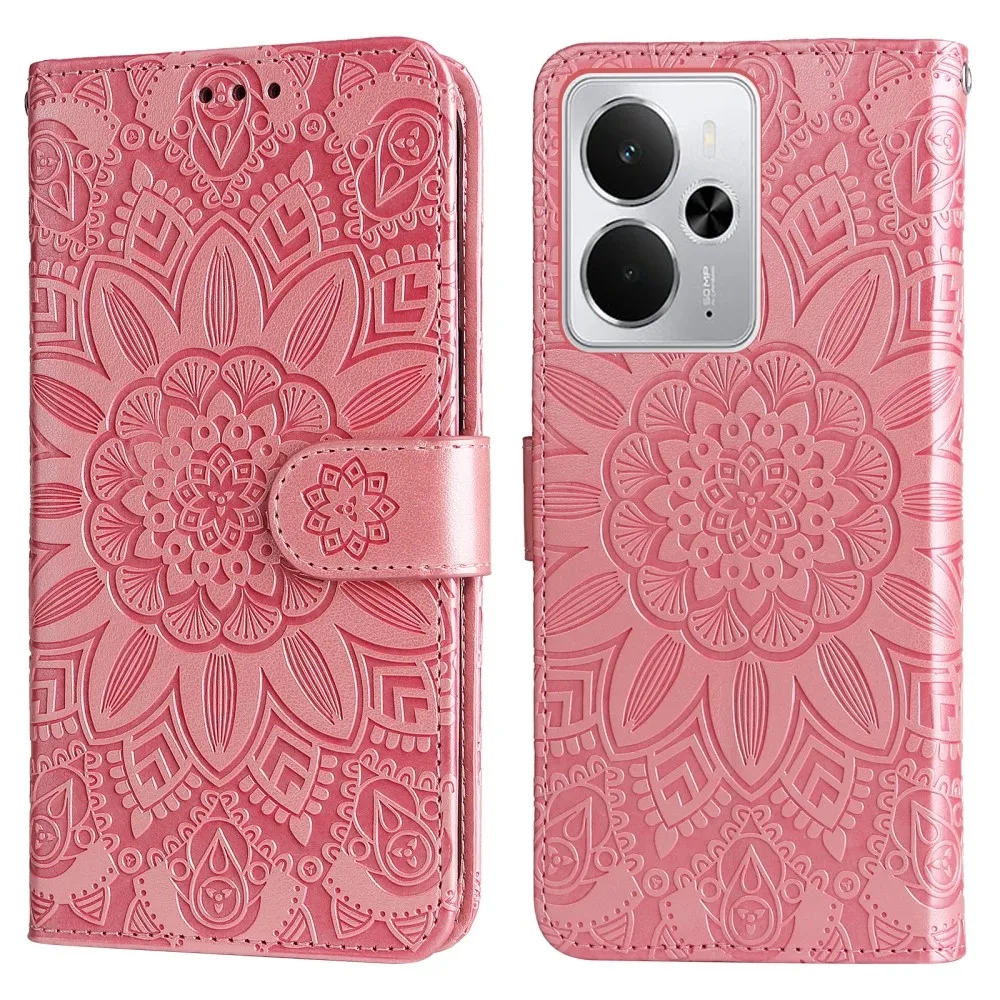 Rózsaszín napraforgó pénztárca tok a Realme 14 5G mobiltelefonhoz