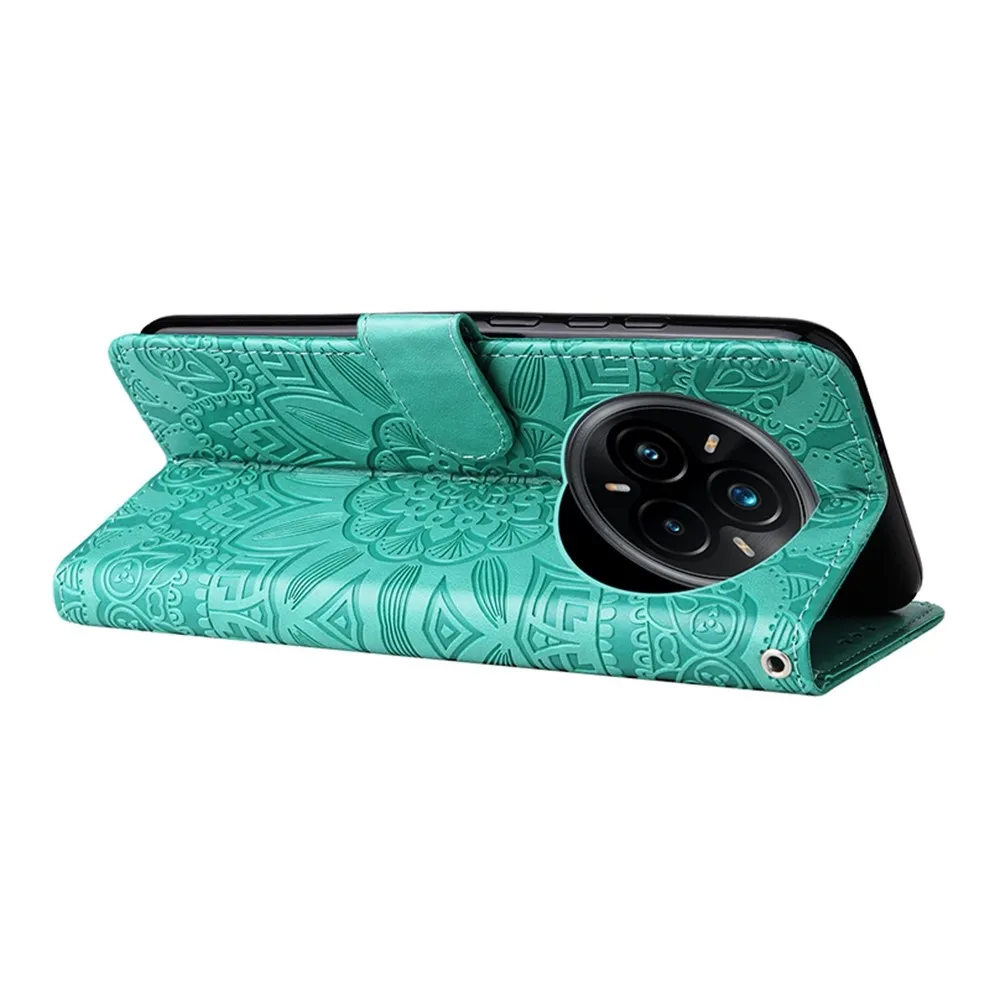 Kék-zöld napraforgó pénztárca tok a Realme 14 Pro+ 5G számára