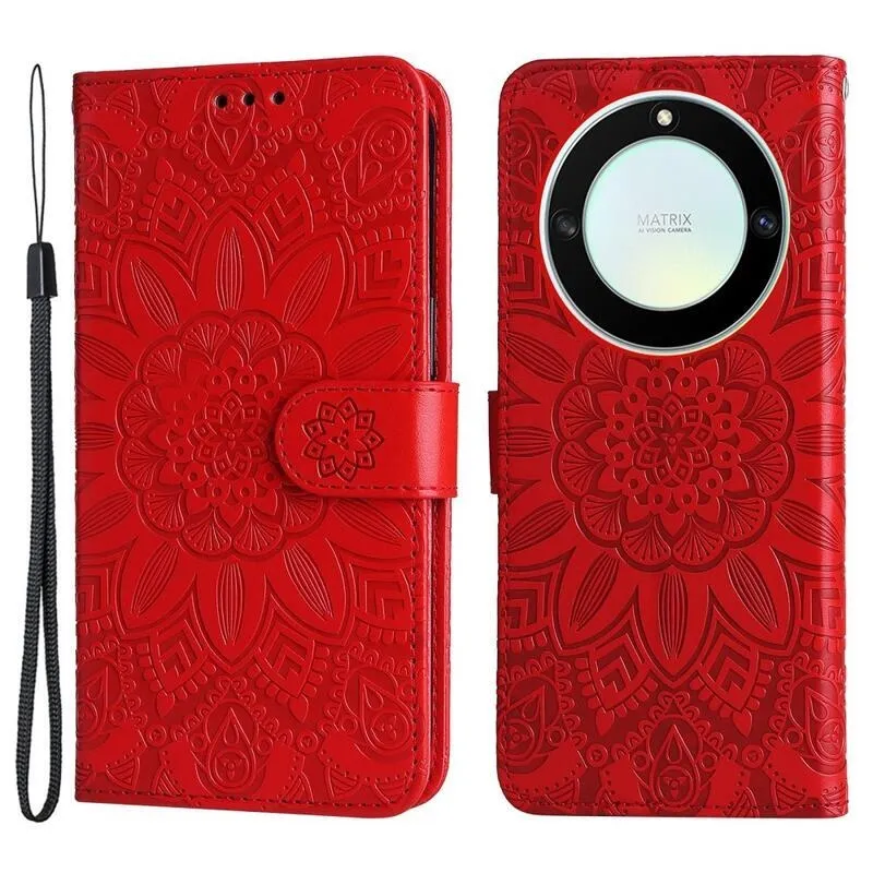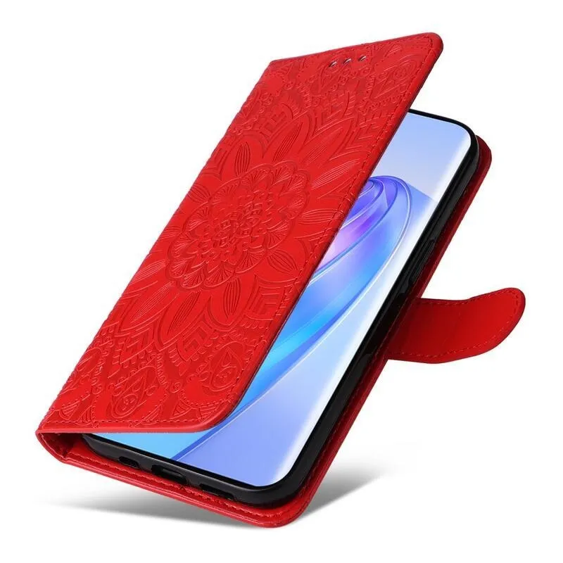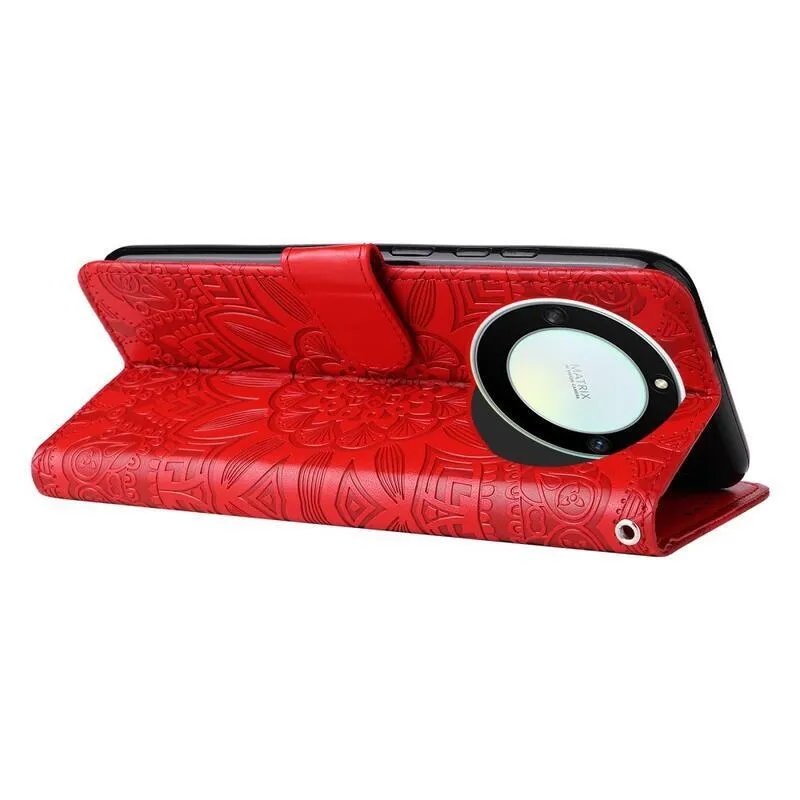 Napraforgó könyvtáska Honor Magic 5 Lite 5G-hez - piros
