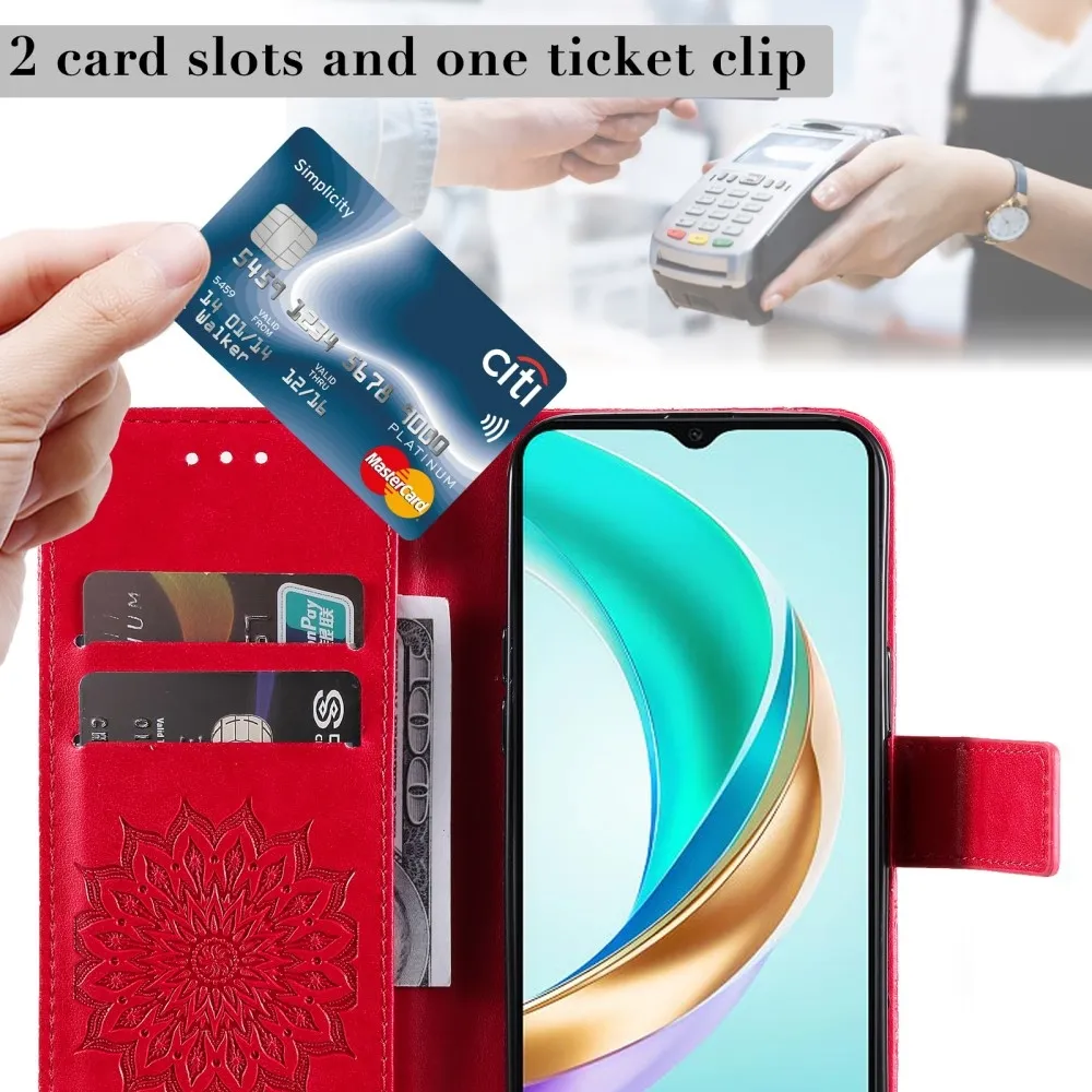 Piros napraforgó pénztárca tok a Honor X6b számára