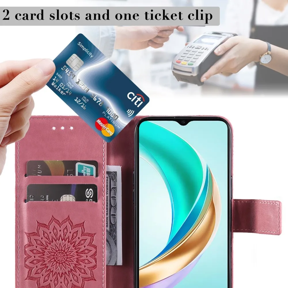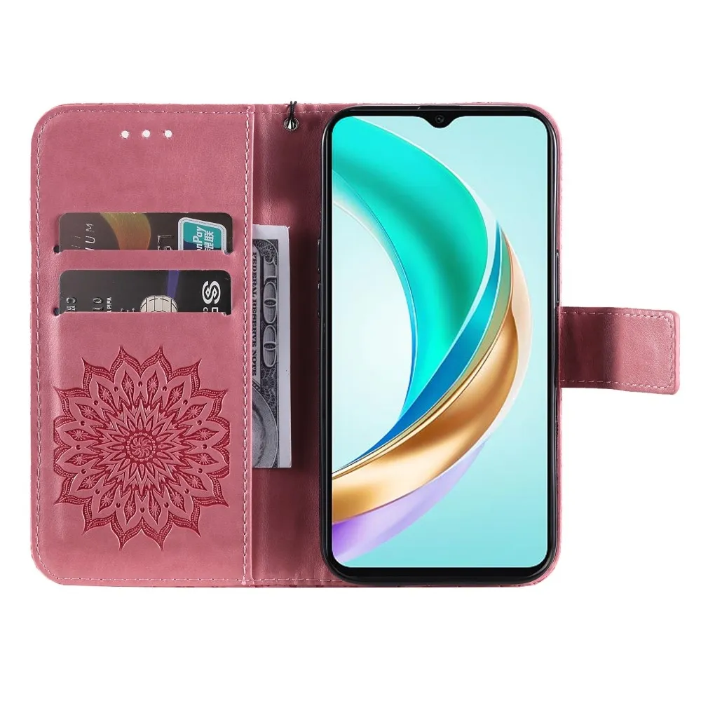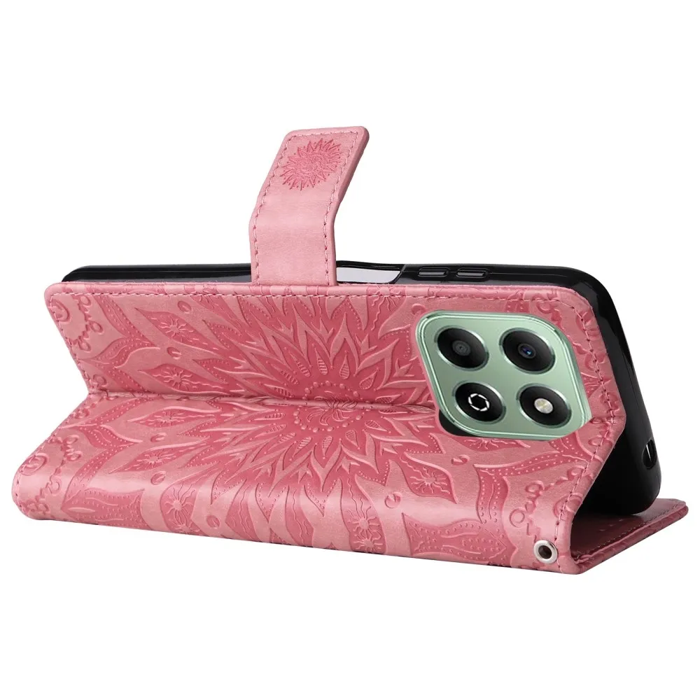 Rózsaszín pénztárca tok Napraforgó a Honor X6b számára