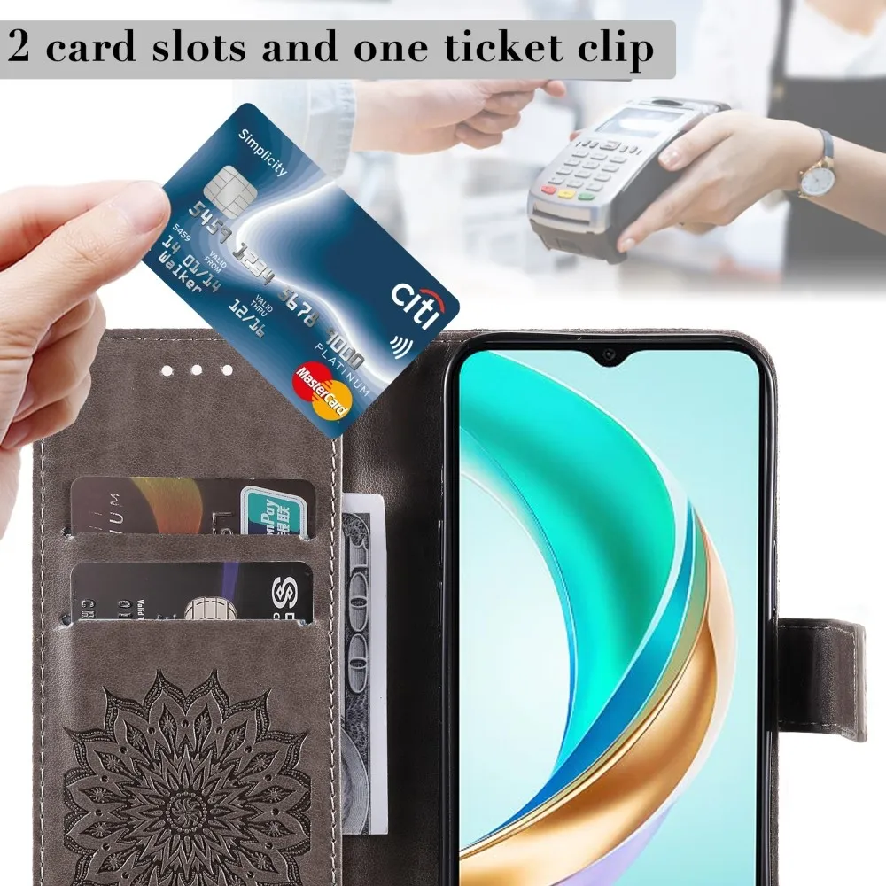 Szürke napraforgó pénztárca tok a Honor X6b számára