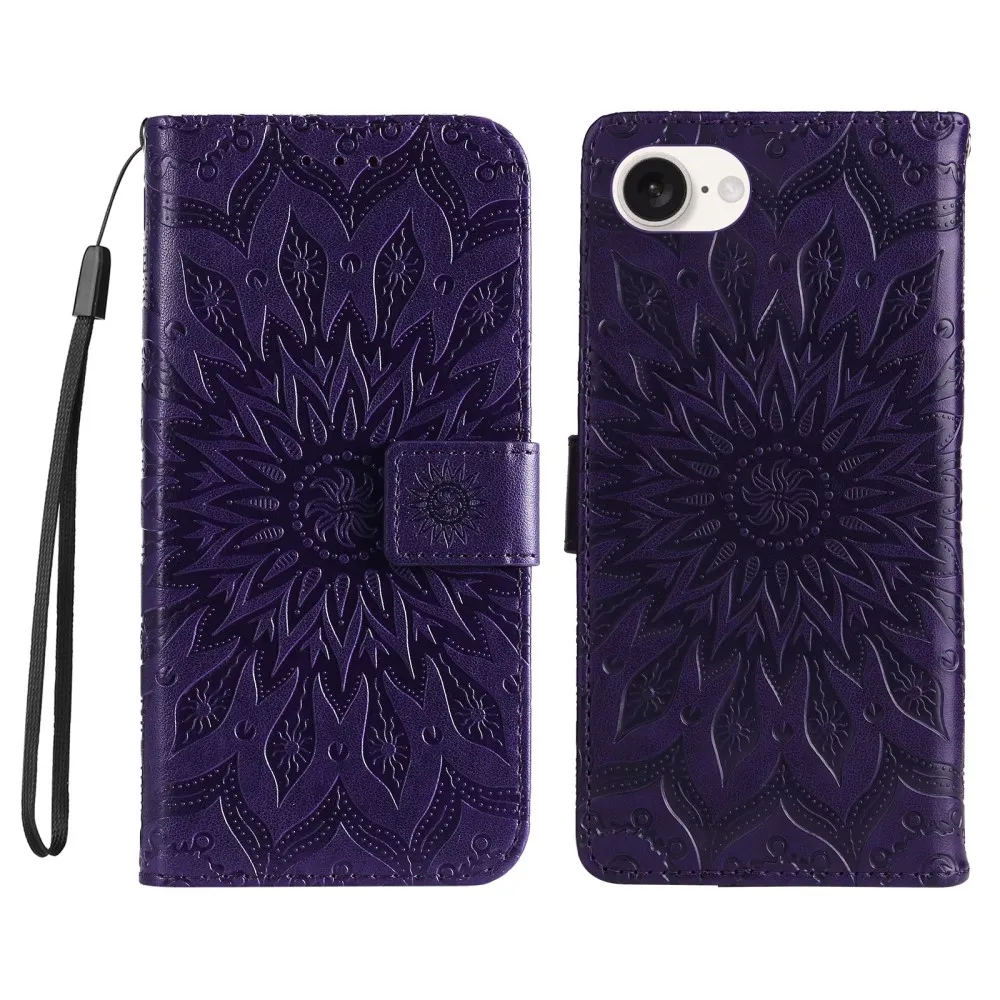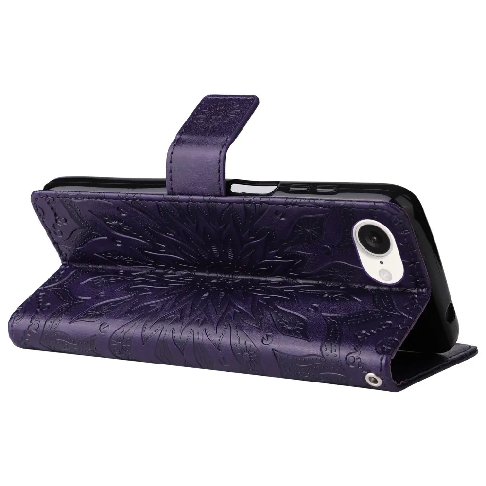 Napraforgó könyvtáska iPhone 16e készülékhez - sötétlila