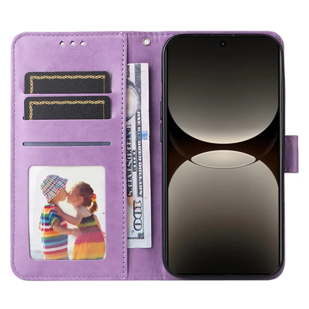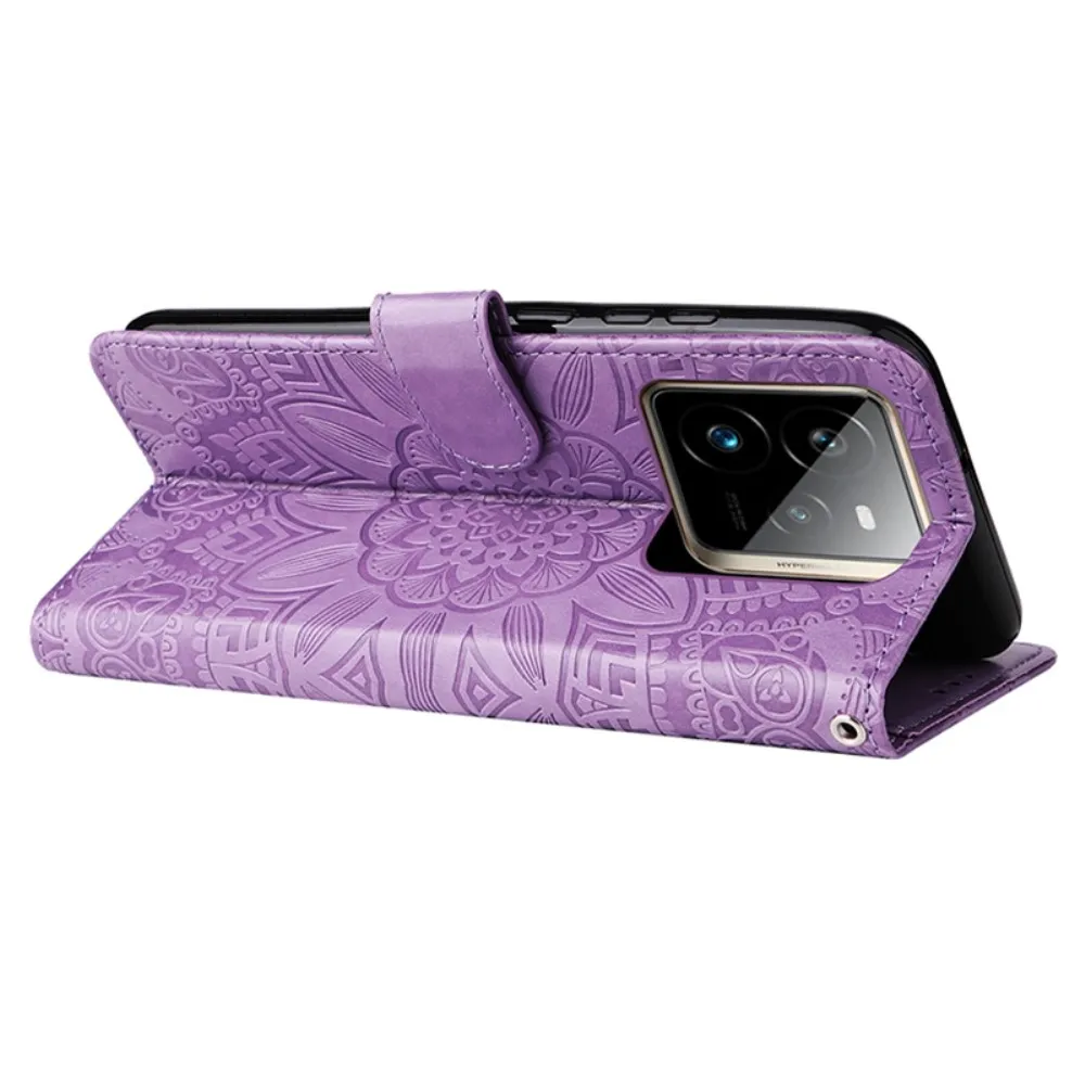 Napraforgó könyvtáska Realme GT 7 Pro 5G-hez - lila