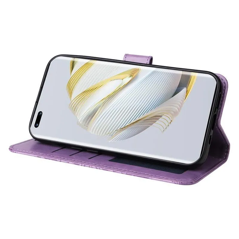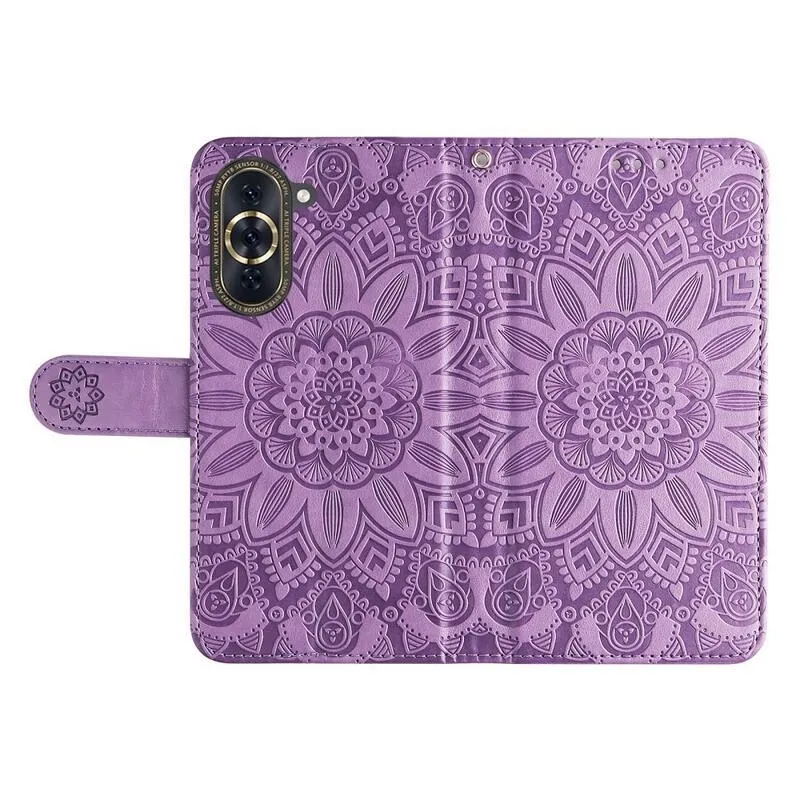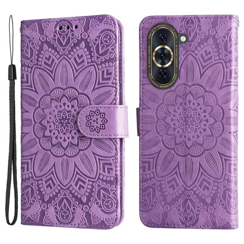 Lila pénztárca tok Napraforgó a Huawei Nova 10 számára