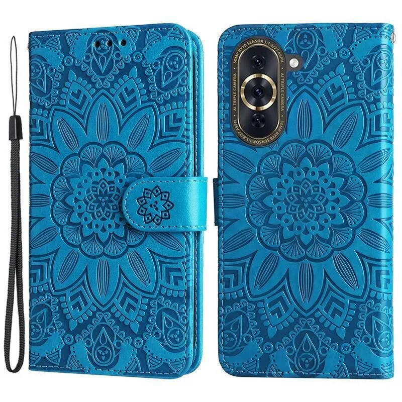 Kék pénztárca tok Sunflower a Huawei Nova 10 Pro-hoz
