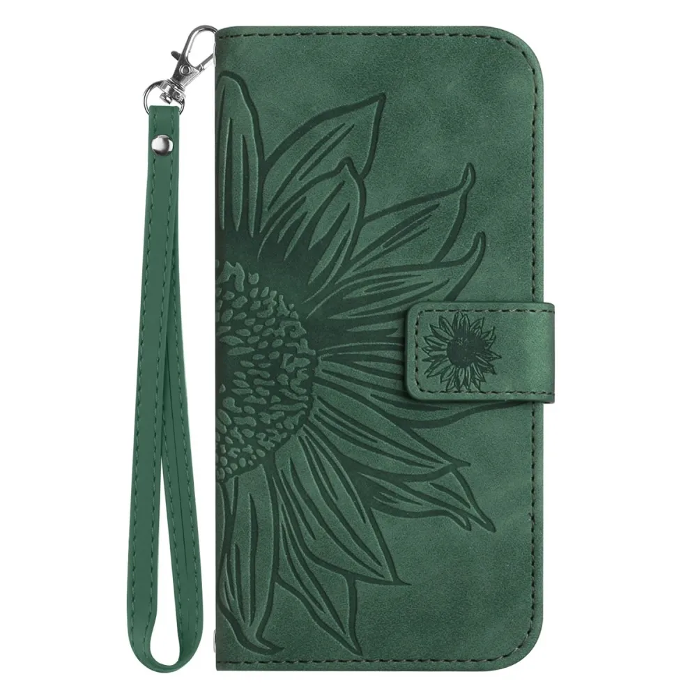 Sötétzöld napraforgók pénztárca tok Xiaomi Redmi Note 14 Pro számára