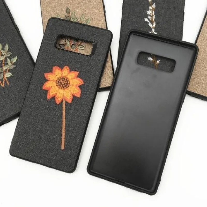 Natur zselés tok textil felülettel Samsung Galaxy Note 8-hoz - fekete virág