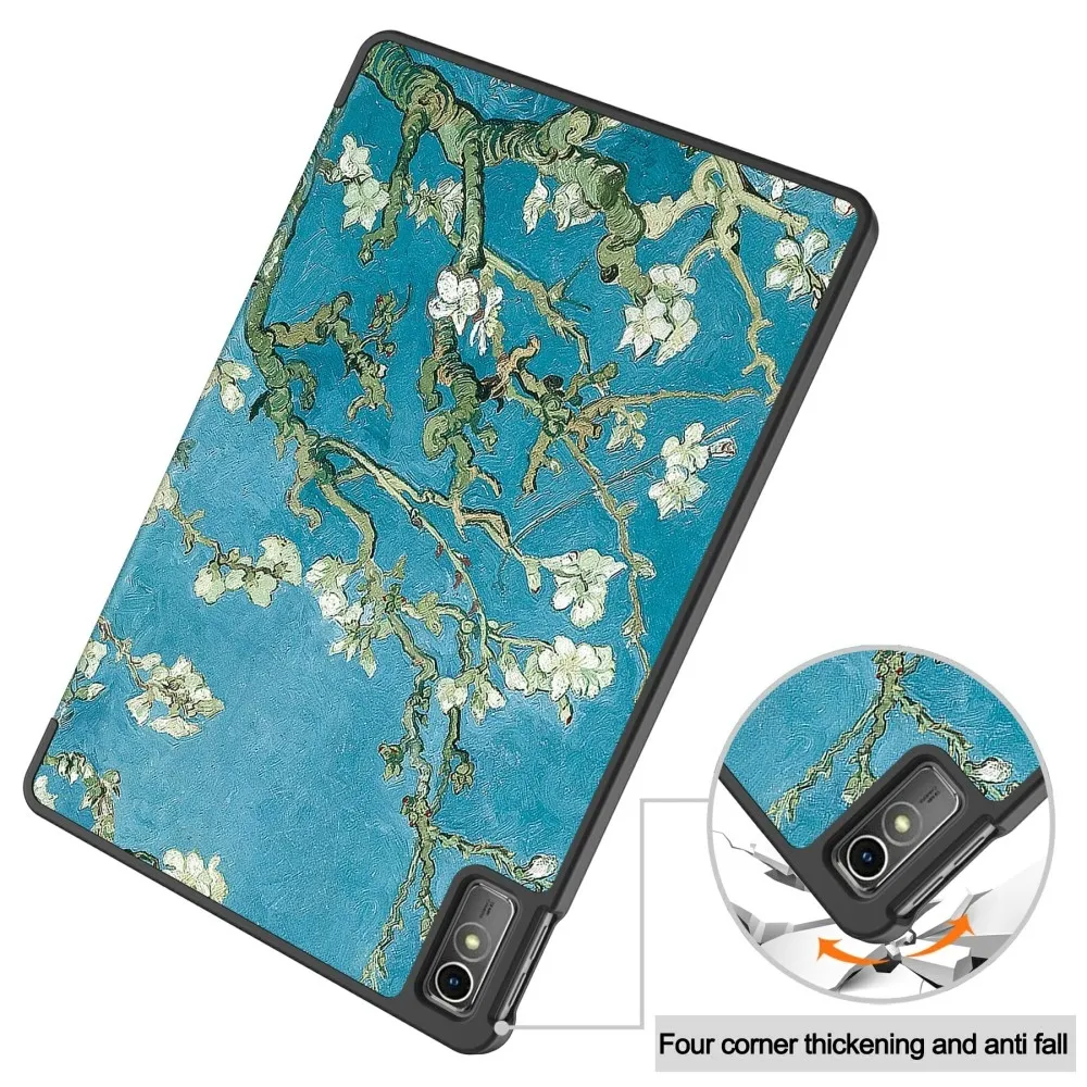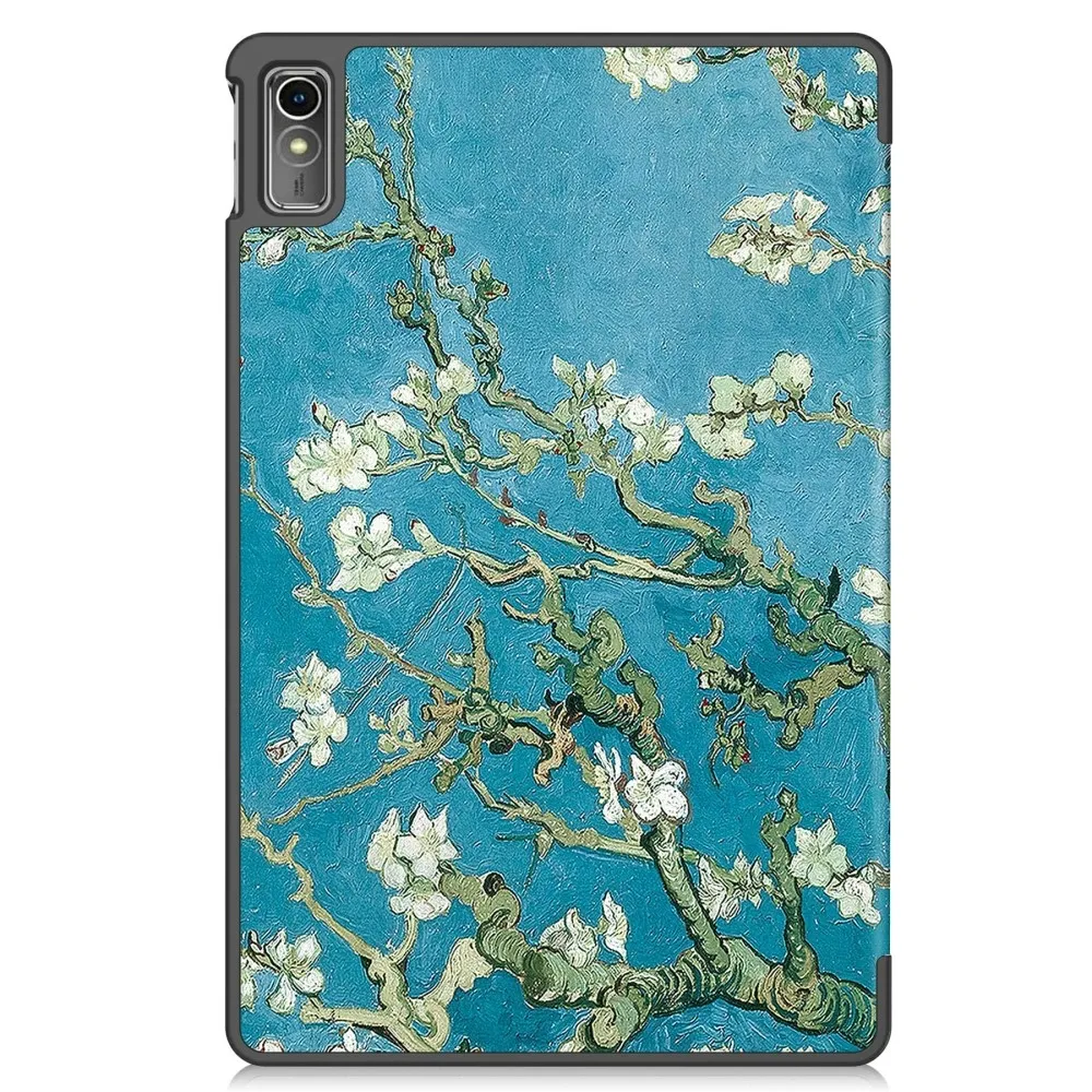 Intelligens záró tok Nyomtatás Lenovo Tab M10 5G-hez fehér virágmotívummal