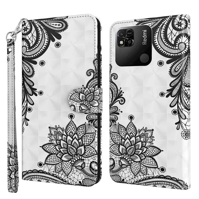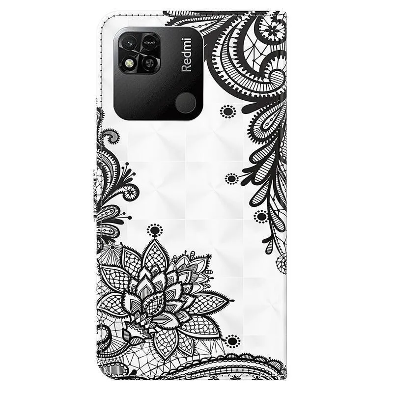 Tárca tok Nyomtatás a Xiaomi Redmi 10A számára csipke virág motívummal