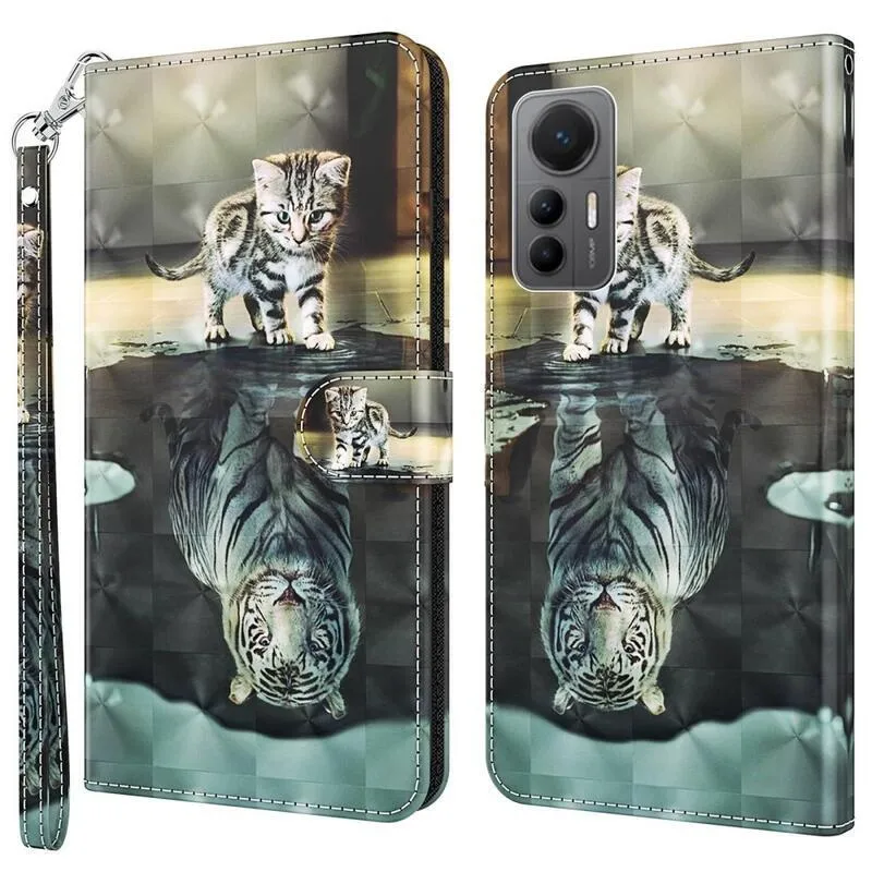 Könyvborító Nyomtatás a Xiaomi 12 Lite számára macska és tigris tükörképével
