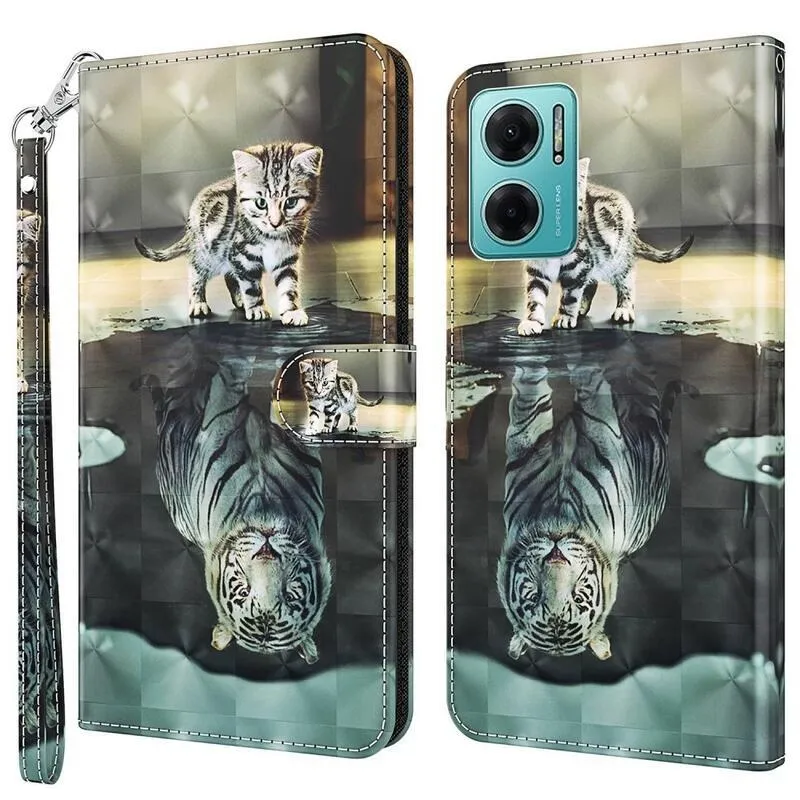 Nyomtatás pénztárca tok Xiaomi Poco M4 5G - macska és tigris tükörkép
