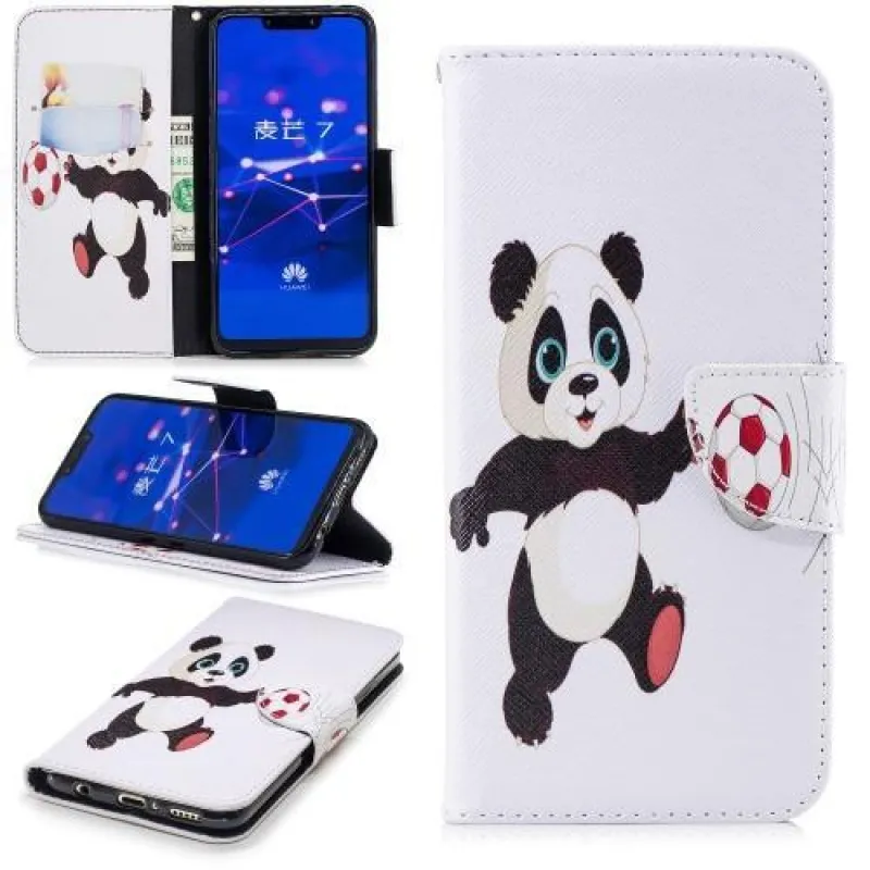 Nyomtatás PU bőr pénztárca tok Huawei Mate 20 Lite - panda labdával