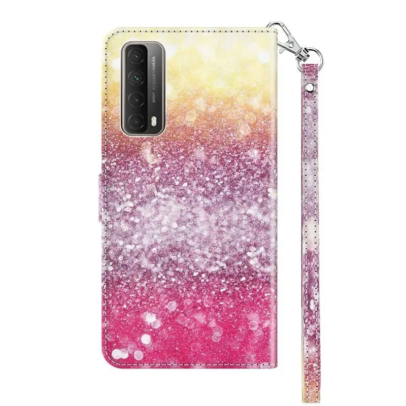 Nyomtatás PU bőr pénztárca tok Huawei P Smart (2021) - csillogó mintás