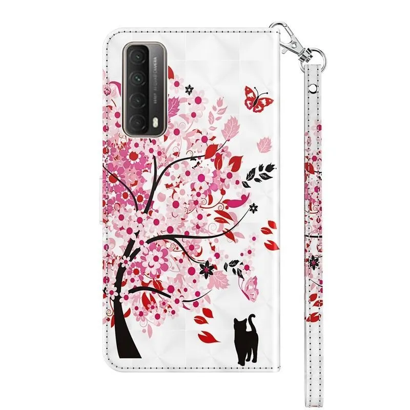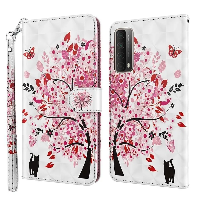 Nyomtatás PU bőr pénztárca tok Huawei P Smart (2021) - virágzó fa