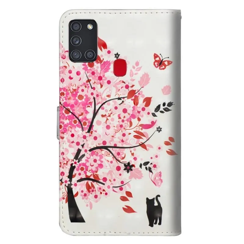 Nyomtatás PU bőr pénztárca tok Samsung Galaxy A21s - virágzó fa