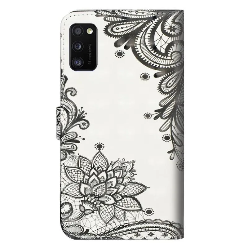 Nyomtatás PU bőr pénztárca tok Samsung Galaxy A41 - csipkés virág