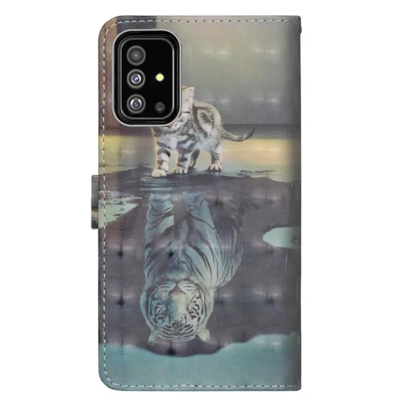 Könyvborító Nyomtatás mobil Samsung Galaxy A51 mobiltelefonhoz macskával és tigris tükörképpel