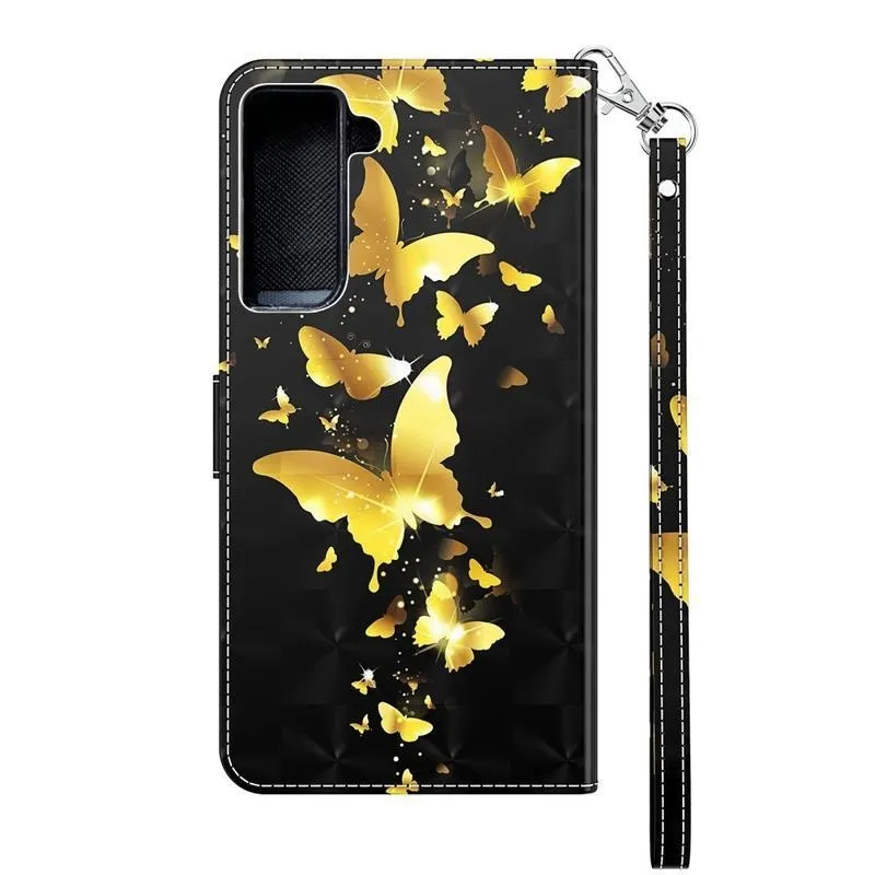 Nyomtatás PU bőr pénztárca tok Samsung Galaxy S21 - arany pillangók