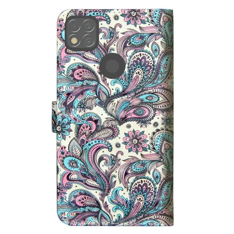 Nyomtatás PU bőr pénztárca tok Xiaomi Redmi 9C - kasmír minta