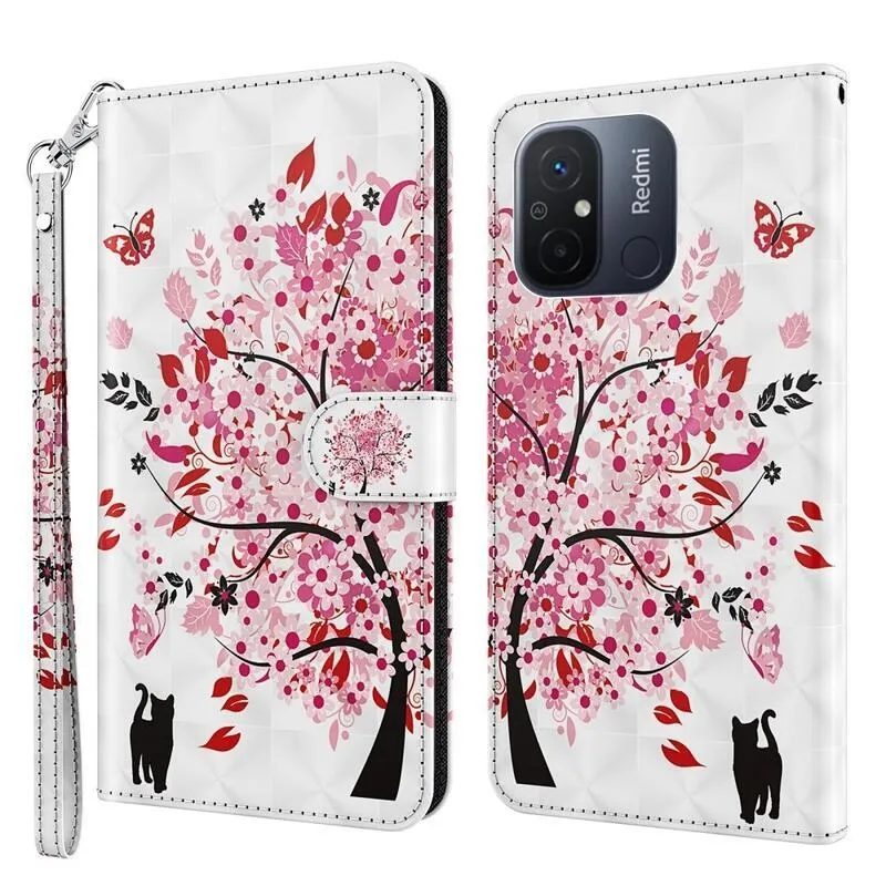 Tárca tok Nyomtatás a Xiaomi Redmi 12C-re virágzó fa motívummal