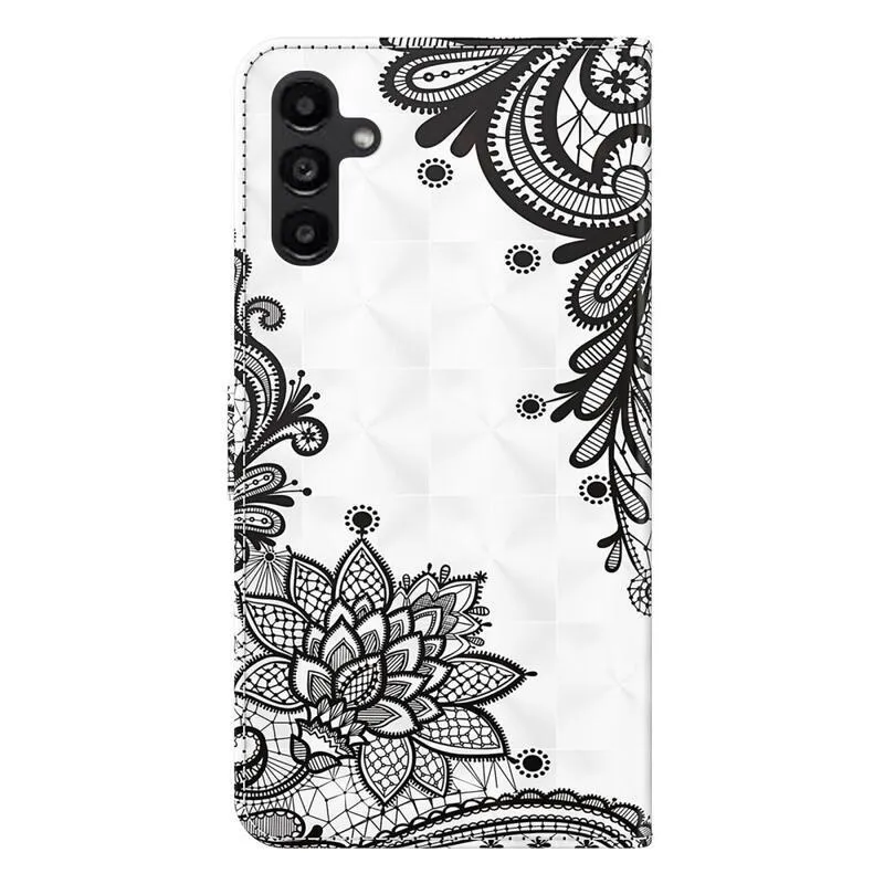 Tárca borító Nyomtatás Samsung Galaxy A14 4G/5G számára, csipke virág motívummal