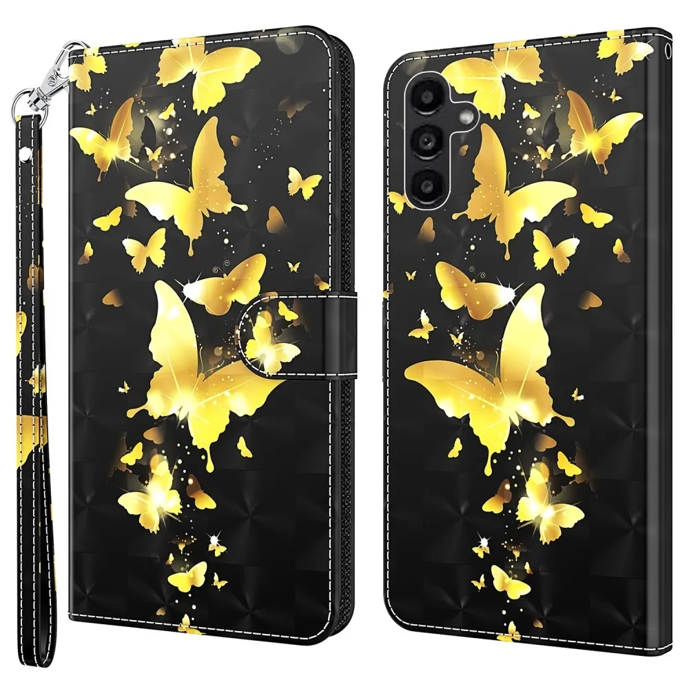 Tárca tok Nyomtatás Samsung Galaxy A35 5G arany pillangókkal