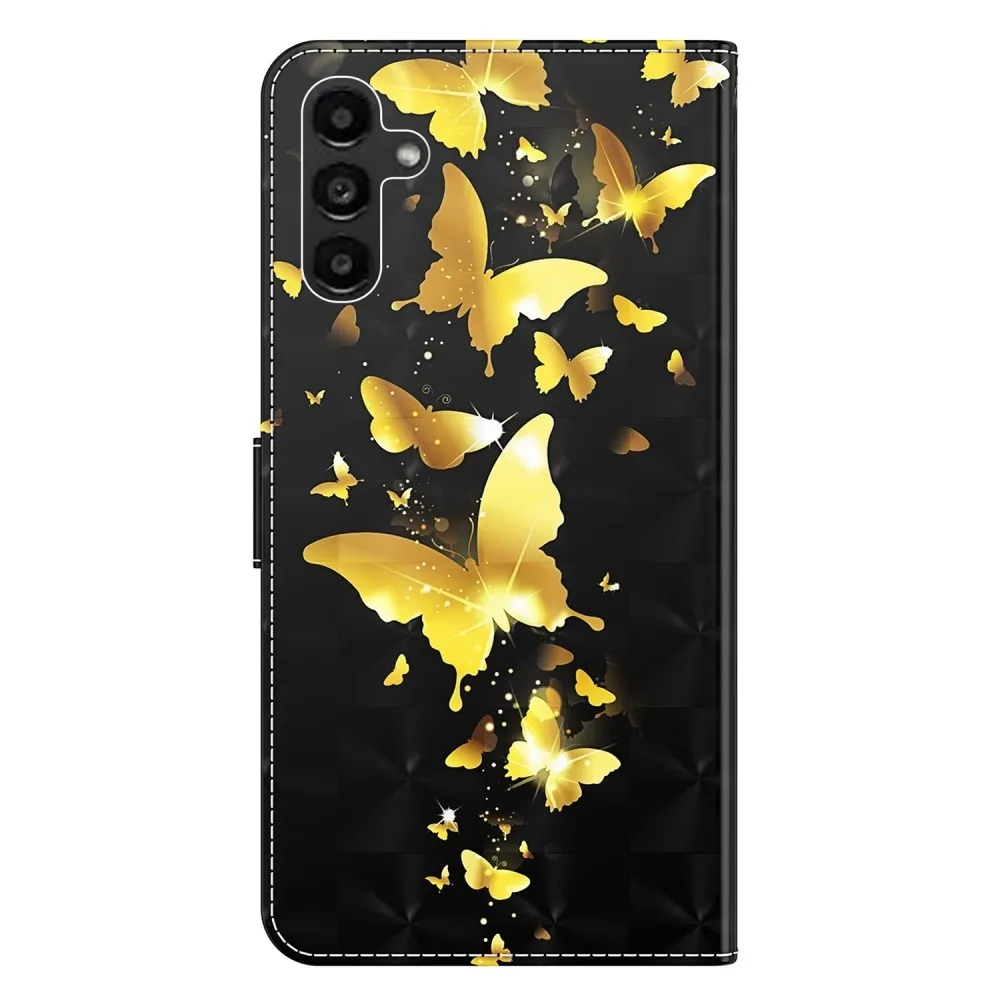 Tárca tok Nyomtatás Samsung Galaxy A55 5G arany pillangókkal