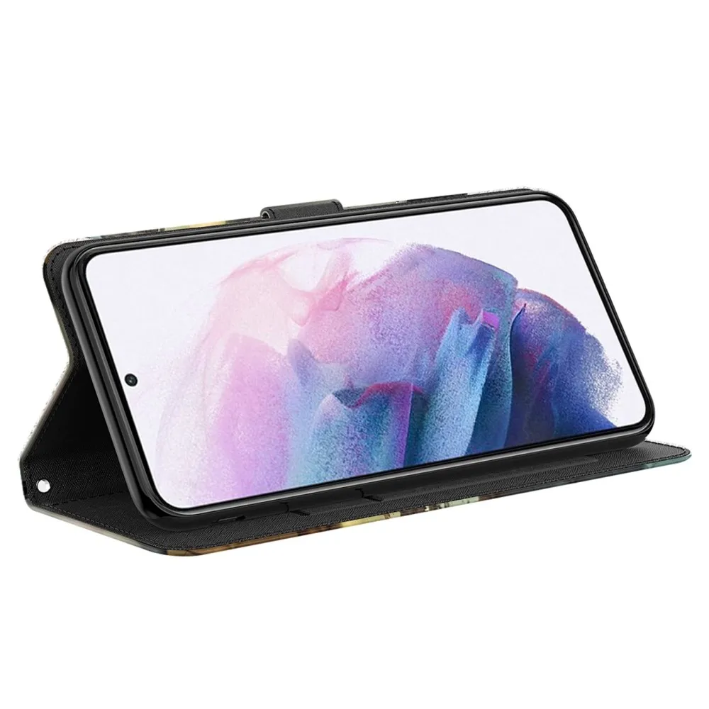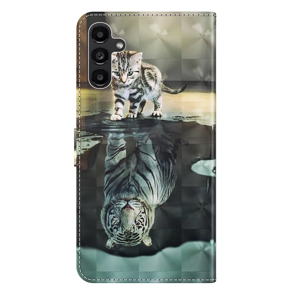 Tárca tok Nyomtatás mobil Samsung Galaxy A55 5G mobiltelefonhoz, cica motívummal és a tigris tükörképével
