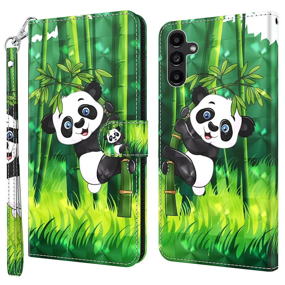 Tárca tok Nyomtatás Samsung Galaxy A55 5G számára, pandamotívummal bambuszon
