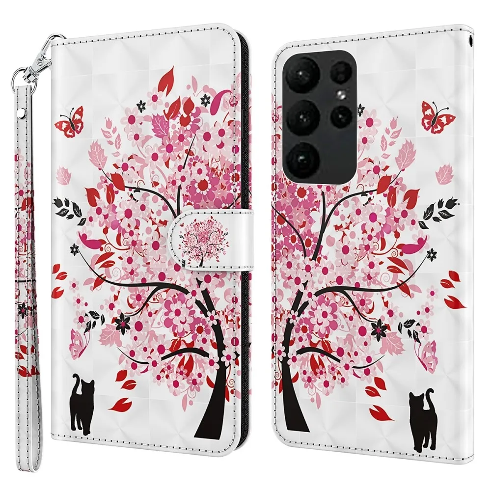 Tárca tok Nyomtatás Samsung Galaxy S24 Ultra készülékre egy virágzó fa képével