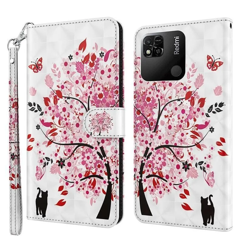 Tárca tok Nyomtatás Xiaomi Redmi 10A számára virágzó fa motívummal