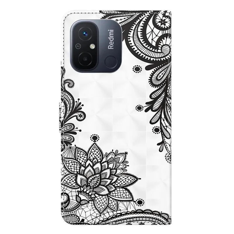 Tárca tok Nyomtatás Xiaomi Redmi 12C számára csipke virág motívummal
