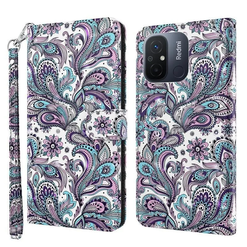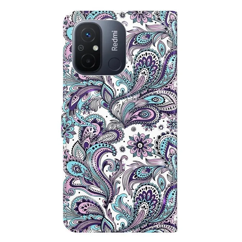 Tárca tok Nyomtatás a Xiaomi Redmi 12C számára kasmír mintával