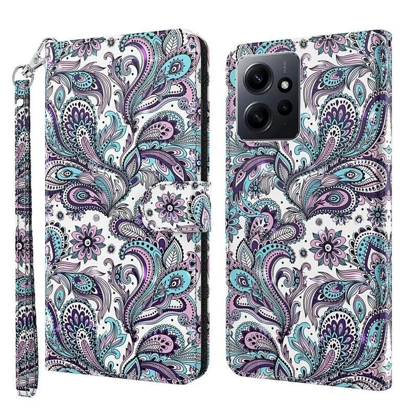 Tárca tok Nyomtatás a Xiaomi Redmi Note 12 4G-re kasmír mintával