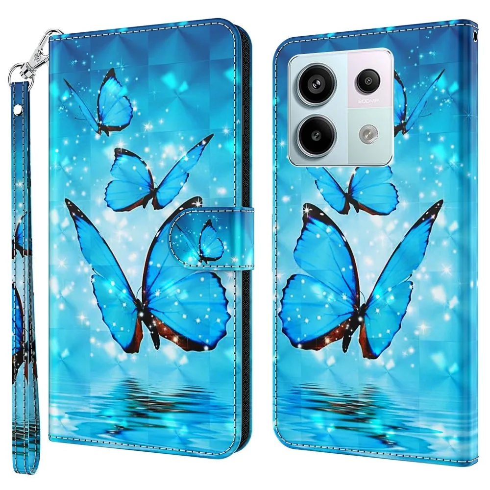 Tárca tok Nyomtatás a Xiaomi Redmi Note 13 Pro 5G/Poco X6 5G számára kék pillangókkal