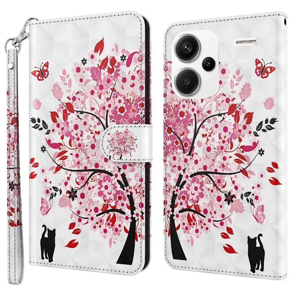 Tárca tok Nyomtatás Xiaomi Redmi Note 13 Pro+ 5G számára virágos fa motívummal