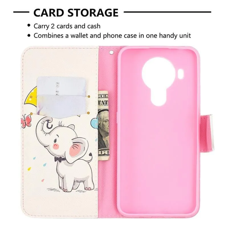 Nyomtatott pénztárca tok Nokia 5.4 mobiltelefonhoz - elefánt
