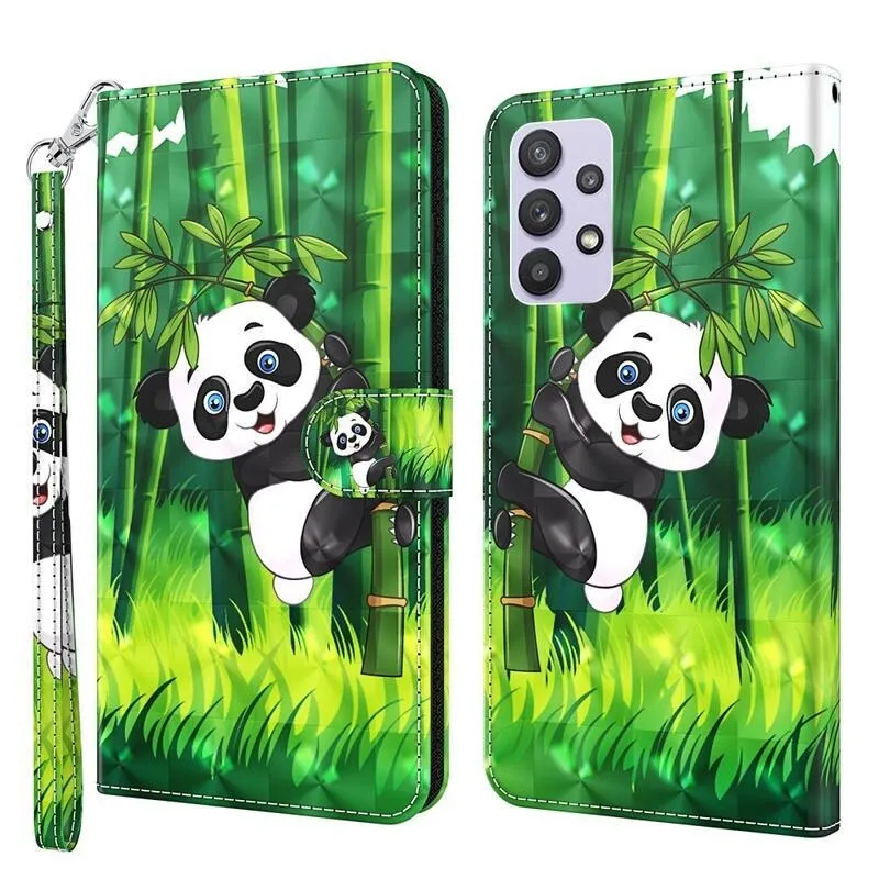 Nyomtatott pénztárca tok Samsung Galaxy A32 5G - panda a bambuszon