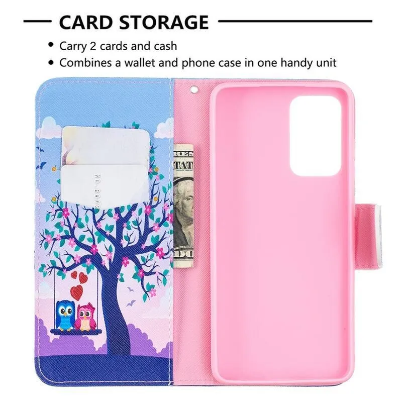 Nyomtatott pénztárca tok Samsung Galaxy A52 5G/4G/A52s 5G - baglyok egy fán