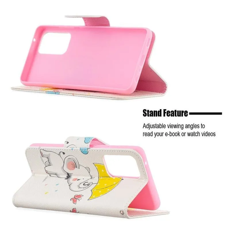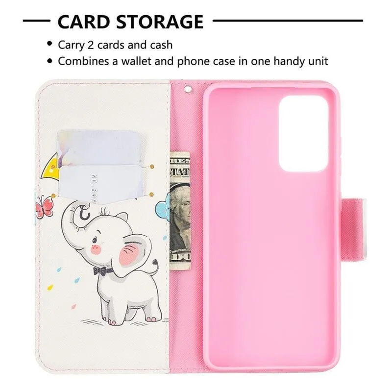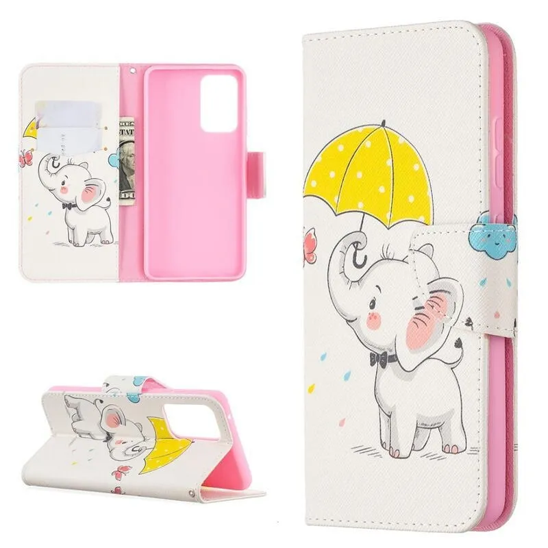 Nyomtatott pénztárca tok Samsung Galaxy A52 5G/4G/A52s 5G - elefánt esernyővel