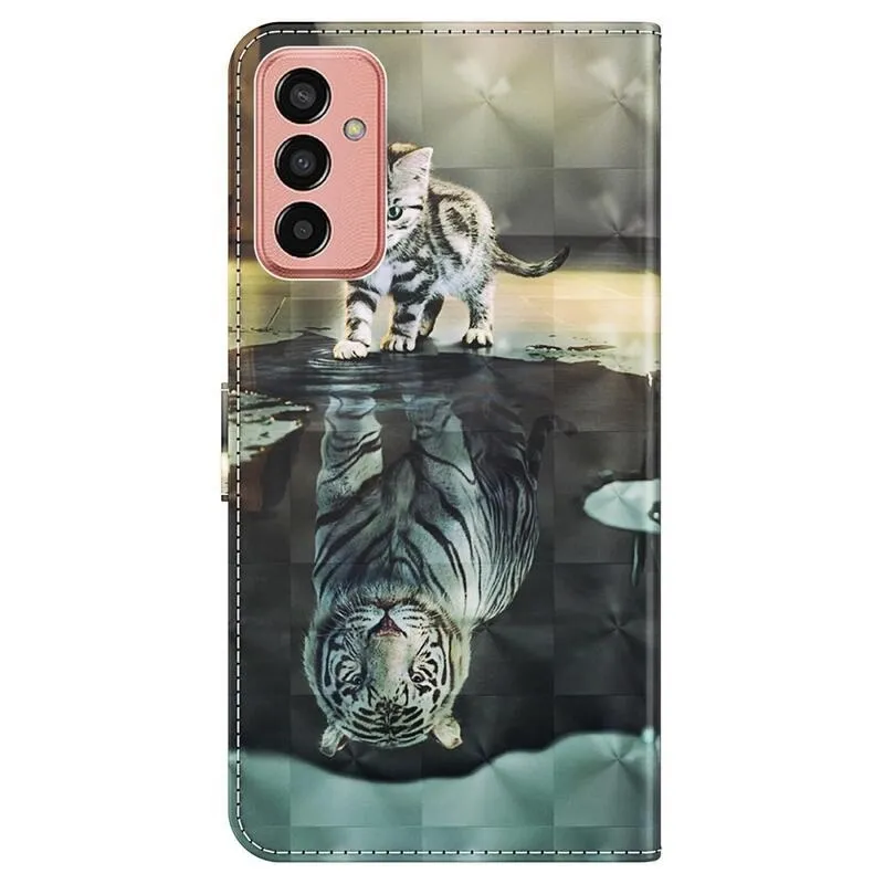 Könyvborító Nyomtatás Samsung Galaxy M13-hoz egy cicával és a tigris tükörképével